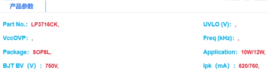 ?LP3716NCK?:同样采用SOP8L封装,但功率范围为12V 1A,即12W,适用于路由器、音响、茶炉板、风扇灯、灯条、灯带、面板灯等设备?。