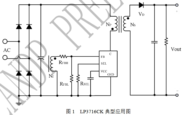 ?LP3716CK?:适用于多种电源应用,包括适配器、充电器、LED驱动电源、线性电源和RCC开关电源升级换代等?。典型应用图如下所示~