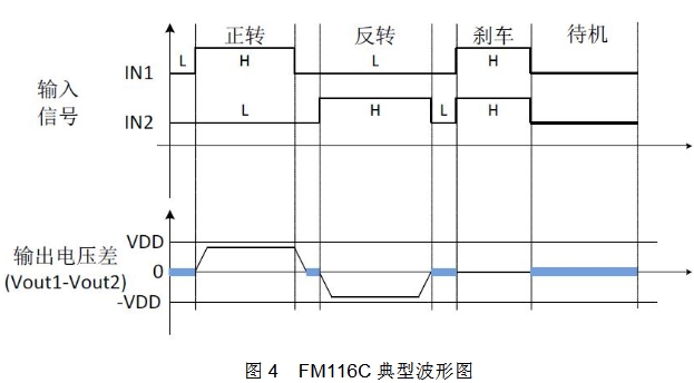 电路采用 H 桥结构, 内置功率 MOSFET 开关,可实现对负载直流电机正转、反转、刹车以及待机四个功能的控制,刹车功能能使负载电机快速停止转动,待机功能使电路静态功耗极低( 小于 1uA)。