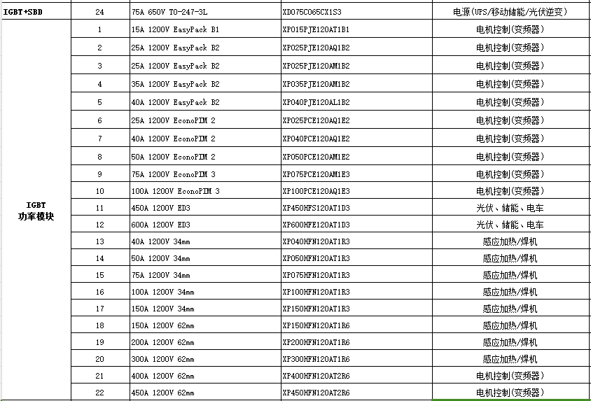 在现代工业自动化和能源效率要求日益增长的背景下,电机控制系统的性能成为了衡量工业设备优劣的重要标准。IGBT(绝缘栅双极型晶体管)模块作为电机控制核心组件之一,其性能直接影响到电机的效率和可靠性。本文将详细介绍25A 1200V IGBT???,包括XP025PJE120AQ1B2、XP025PJE120AM1B2和XP025PCE120AQ1E2型号,探讨它们在电机控制领域的应用和优势。