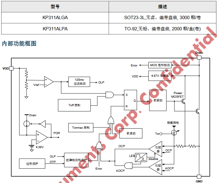 芯片的Drain管脚是内部高压MOSFET的漏极,通过外部电路连接到电源输入端。在工作过程中,MOSFET根据控制??榈男藕沤锌夭僮?,实现能量的转换和传输。同时,输出电压通过VDD管脚反馈到芯片内部,与内部的输出电压基准进行比较,形成闭环控制,确保输出电压的稳定性和精度。