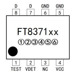 FT8371A-RT采用SOP8封装,具有8个管脚,每个管脚都有明确的功能定义。以下是详细的管脚说明: