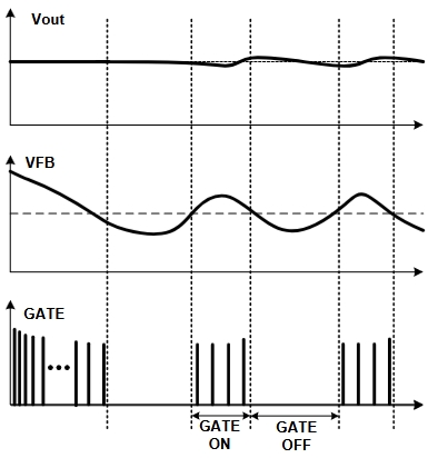 当负载减轻时,LP8773H进入“数字频率监控”模式。在这种模式下,系统频率会在最高限制频率和最低限制频率之间动态调整。芯片通过内置的数字计数器选择和锁定谷底,从而实现高效的功率转换。这种模式特别适合轻载或小功率输出场景,能够显著降低系统的功耗。