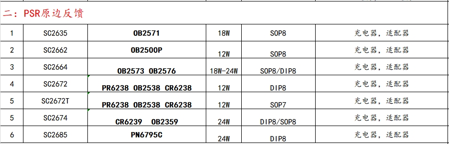 PSR(Primary Side Regulation)原边反馈系列是鼎芯微电子推出的一类高效电源管理芯片,适用于充电器、适配器等应用场景。以下是该系列部分型号及其替代型号: