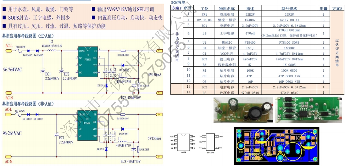 输出5V/9V/12V通过SEL可调,SOP8封装,工字电感,外围少内置高压启动,启动快,动态快具有过压、欠压、过流、过温、短路等?;すδ?。用于水壶、风扇、饭煲、门铃等。