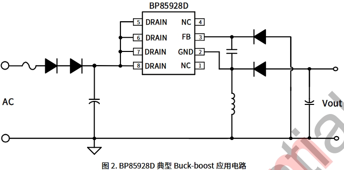 BP85928D内部集成了650V高压MOSFET,能够满足高压输入的需求。同时,它还集成了高压启动和自供电电路,简化了电源启动过程,提高了系统的稳定性和可靠性。