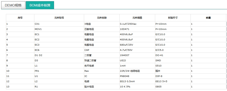 根据提供的测试数据,PN8046芯片在不同输入电压下均能保持较高的效率。在150V、230V和264V的输入电压下,平均效率分别为77.4%、78.4%和77.4%。此外,元件温度测试数据显示,在不同电压下,IC、电感、输出电解、二极管和输入电解的温度均保持在合理范围内,确保了芯片的可靠性和稳定性。