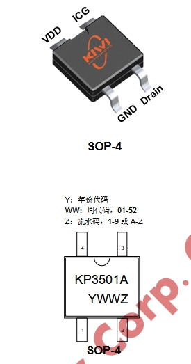 KP3501AVGA 采用 SOP-4 封装,具体尺寸如下: