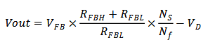 其中,Nf是变压器辅助绕组匝数,RFBH是FB外接的上偏电阻,RFBL是FB内置的固定下偏电阻,VFB一般按照1.0V计算,VD为输出续流管压降。