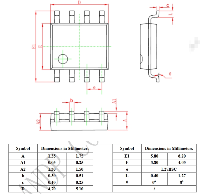 LP3610S 采用 SOP8L 封装形式,这种封装不仅尺寸紧凑,而且具有良好的散热性能和电气特性。封装的详细尺寸信息如下