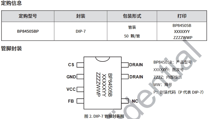 BP84505P采用了紧凑的封装形式,如DIP-7等,能够在有限的空间内实现高效能的电源管理。这对于现代电子设备的小型化和轻薄化设计具有重要意义。小巧的封装尺寸不仅能够节省电路板空间,还能降低设备的整体尺寸和重量,满足消费者对便携式电子设备的需求。
