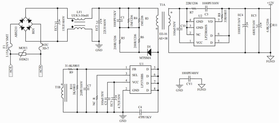 在当今电子设备日益普及的时代,电源适配器作为设备的“能量源泉”,其性能和稳定性至关重要。本文将详细介绍一款基于LP3718BS与LP25R060S芯片的12V1.5A电源适配器方案,重点阐述其电路设计、性能特点以及测试验证过程,旨在为电源设计工程师及相关技术人员提供一个高效、稳定且符合标准的参考方案。
