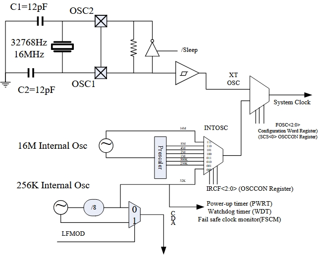 该微控制器支持多种中断源,包括外部中断、定时器中断、ADC中断、比较器中断等。中断控制寄存器(INTCON)和外围中断请求寄存器(PIR1/PIR2)记录了中断标志位,而对应的中断使能寄存器(PIE1/PIE2)则控制中断的使能。这种灵活的中断处理机制使得系统能够快速响应各种事件,提高了系统的实时性和可靠性。此外,中断返回指令(RETI)在退出中断函数时自动设置全局中断使能位(GIE),重新使能未屏蔽的中断,简化了中断处理流程。