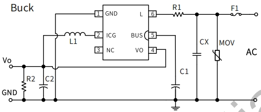 ICG(管脚 2):芯片地,同时也是内置 MOSFET 的源极和内置续流二极管的阴极。该管脚为芯片的内部控制电路提供了接地参考点,并确保 MOSFET 能够正常导通和关断。