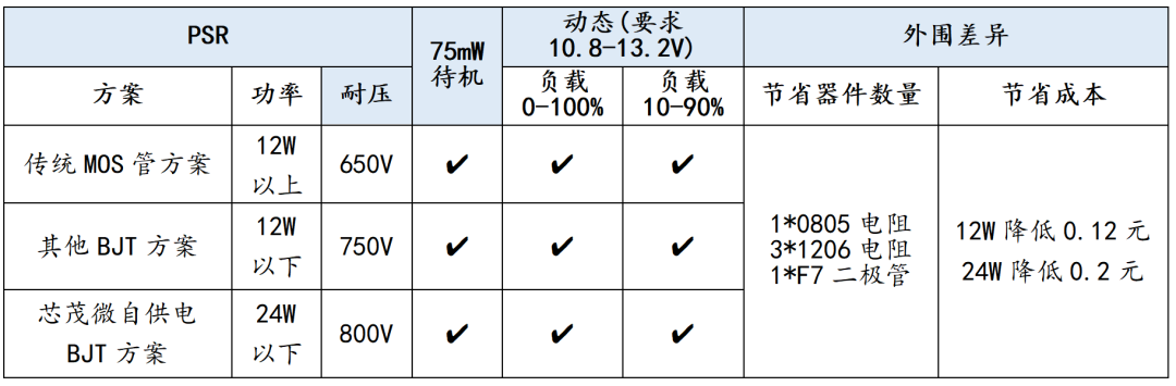 下面附上芯茂微新型自供电BJT方案产品型号列表: