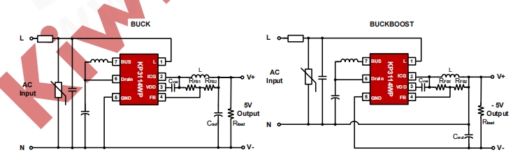 KP3114WPA适用于多种小功率电源应用,如小家电电源、USB充电器等。以下是两种典型的电路应用示例: