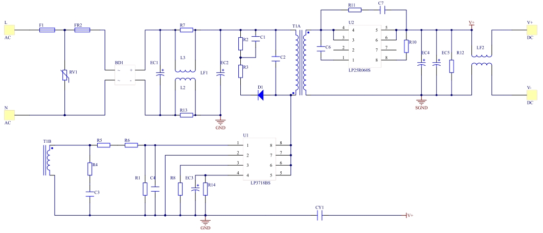 LP3718BS+LP25R060S方案通过无Y电容设计、同步整流优化及多重?;せ?,完美平衡了性能、成本与可靠性,特别适合: