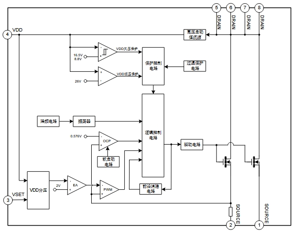 | 过流保护(OCP) | 逐周期限流 | 固定阈值 |