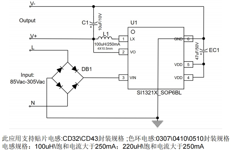 电感布局:将电感(如100μH/0.3A/CD43贴片电感)靠近芯片的LX引脚放置,以减少走线长度和寄生电阻。