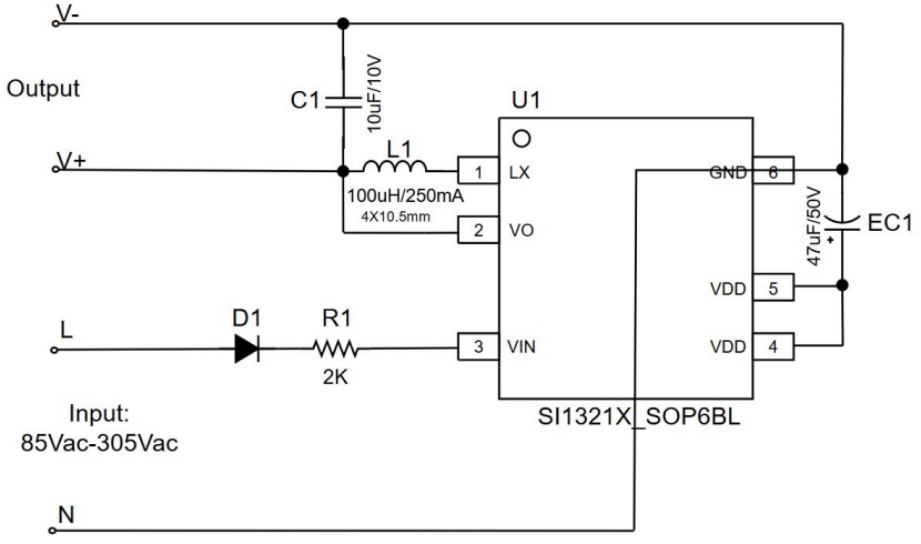 SI13213L/H和SI13215L/H是慧创芯耀(Si-Shine)推出的非隔离降压恒压芯片,专为智能家居等应用场景设计。SI13213L/H提供3.3V的输出电压,而SI13215L/H则提供5V的输出电压。两款芯片均具有宽输入电压范围(85-305VAC)、低输出纹波、低待机功耗(小于50mW)等特点,并且无需π型滤波或安规电容即可通过EMI测试,大大简化了外围电路设计。