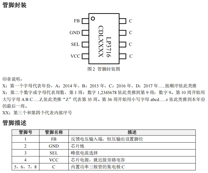 LP3716CDL集成了多种保护功能,包括VCC钳位/欠压保护、FB脚上电阻开路?;?、输出短路保护、输出过压保护、输出续流管开路?;ひ约肮卤;さ?,确保电源系统在各种异常情况下都能安全运行。