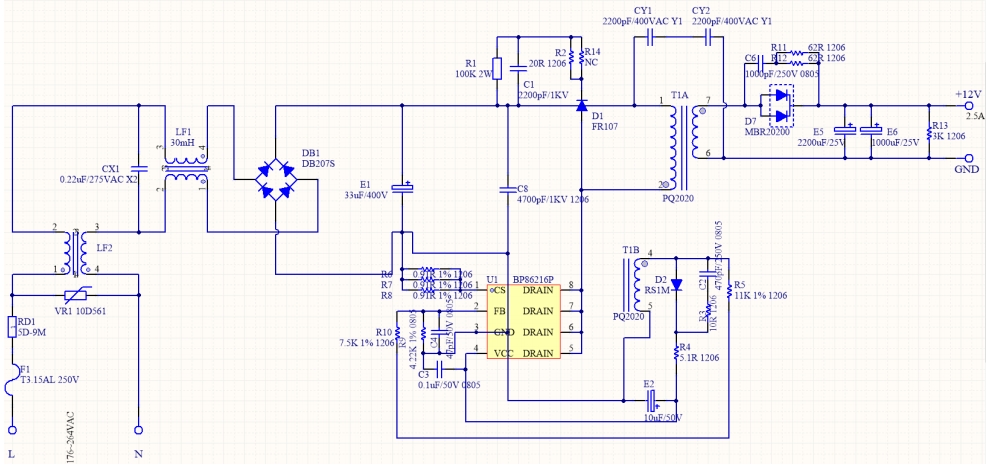 在现代家用电器市场中,电源适配器的效率和稳定性至关重要。今天,我们将深入剖析一款基于 BP86216P 的 12V2.5A 电源方案,其实测效率超过 85%,堪称 30W 功率段的“小钢炮”。