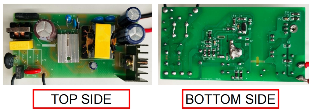 从实物图可以看出,BP86216P 的电路板设计简洁明了。所有元件均采用贴片工艺,确保了生产的高效性和一致性。变压器和电解电容的体积适中,能够适应大多数小型电源适配器的外壳。