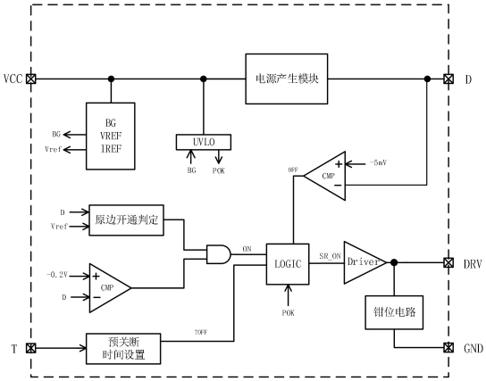 | D | 同步整流驱动器的漏极电压检测脚,同时为VCC脚位供电,检测MOS管漏极电压以实现精准的同步控制。 |