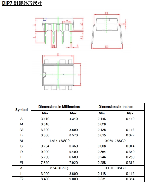 FT8395KD2 采用 DIP-7 封装,管脚定义如下表所示: