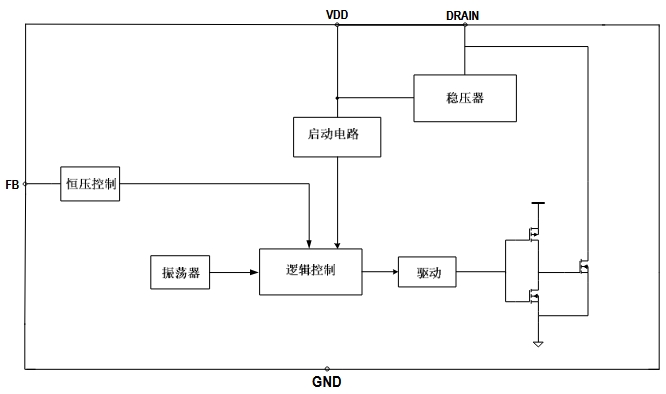 内置高压启动与 CS 电阻,省去启动电阻与电流采样;