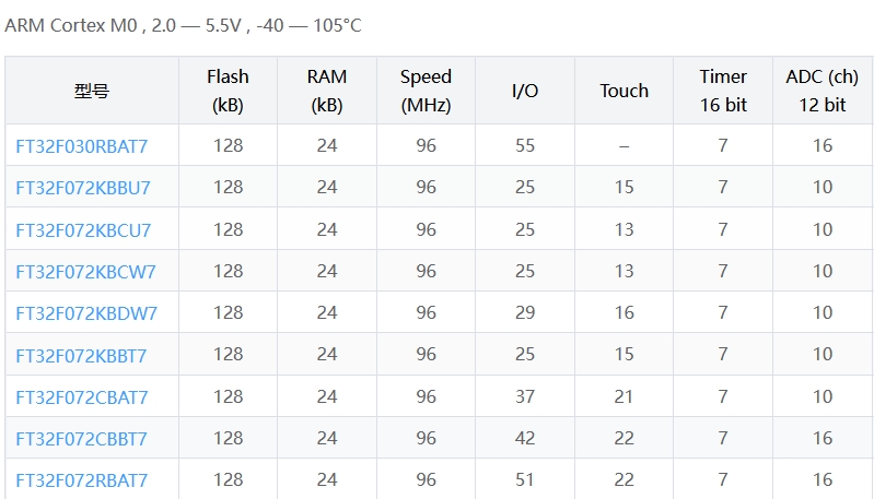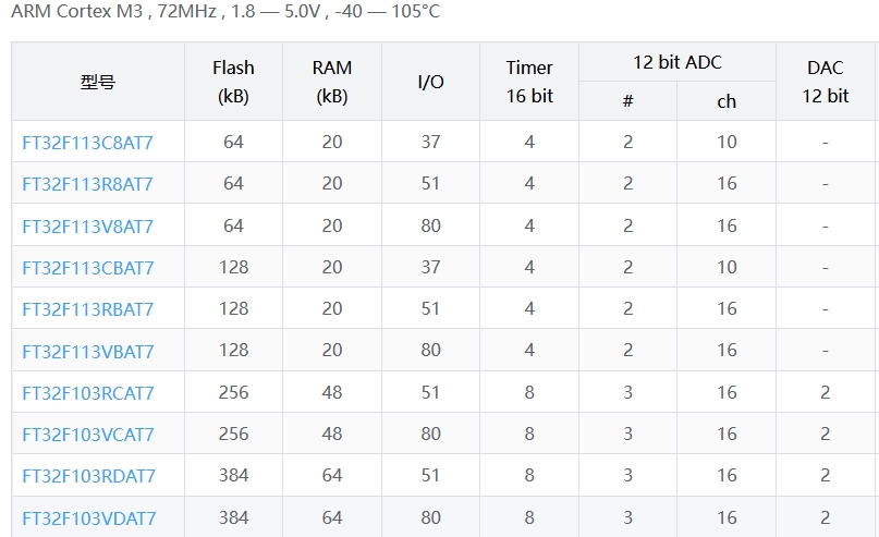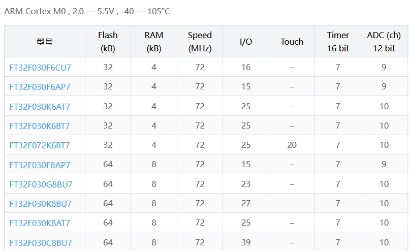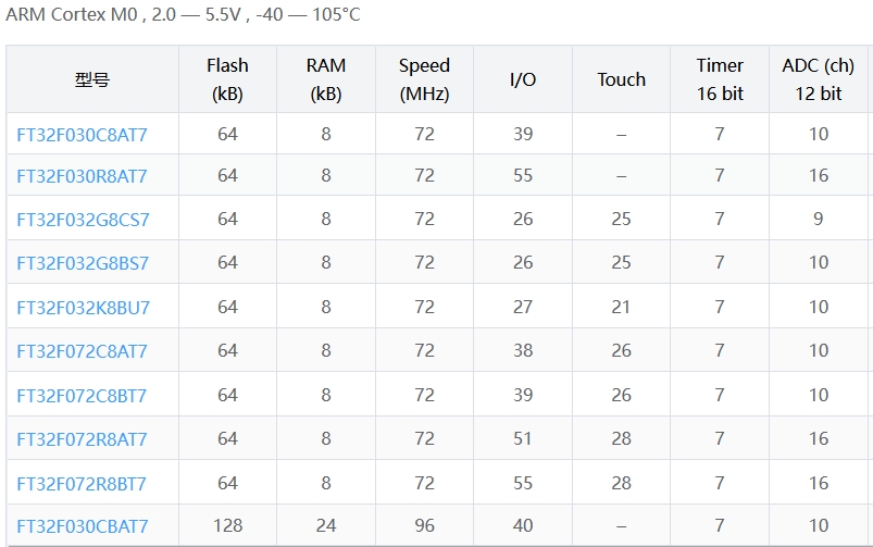 (本文按 Flash/RAM 从小到大排列)