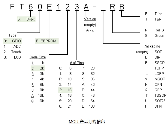 A:F 系列 DROM 擦写 100 万次,贵 3~5 分;其余同。