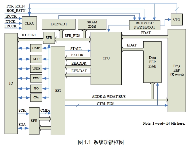 ? 2K×14 Flash、128×8 RAM、256×8 EEPROM——足以容纳本机的状态机、滤波算法及一条 BLE 广播透传协议栈(仅 1.2 kB)。