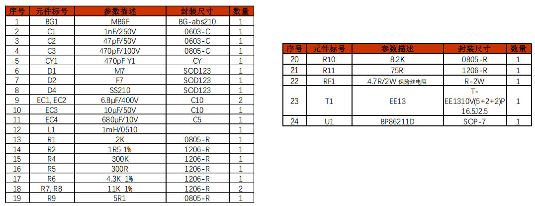 在 5 W-10 W 功率段的家电辅助电源里,工程师最想要的是:省器件、低成本、一次过 EMI、马上能量产。深圳三佛科技提供的 BP86211D 参考设计,用 单颗 SOP-7 芯片 + 650 V 集成 MOSFET,官方实测 12 V/0.5 A(6 W),待机功耗 < 65 mW,BOM 仅 24 颗器件,单面板即可过 CISPR22 Class B 传导。本文带你从特点、电路图、实物、BOM、变压器到测试数据,完整拆解这套“家用电器即插即用级”方案。