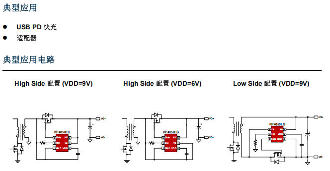| KP4050LGA | SOT23-6L | ±0.8 A / ±5 A | 180 V 耐压,支持 High/Low Side | 快充、工业电源 |