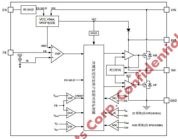 | KP524208A | FPWM | 强制连续模式,固定频率,低纹波,适合通信/逻辑供电 |