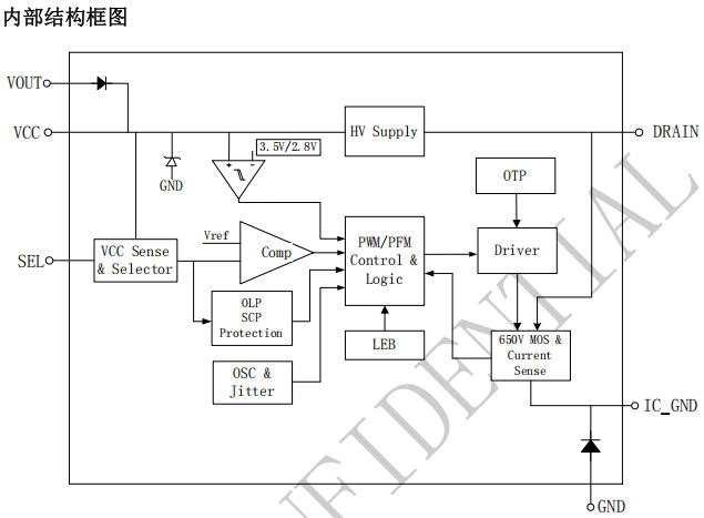 | 特色 | 650 V 功率管 + 续流二极管 + 采样电阻 全内置 |