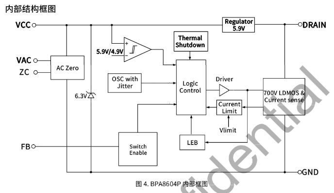 BPA8604P是晶丰明源推出的高集成度反激电源芯片,主打微波炉、电磁炉等家电辅助电源市场。它把700V高压MOS、控制器、过零检测电路集成到一颗DIP-7芯片里,外围极简,还能输出交流过零信号控制继电器,避免打火。
