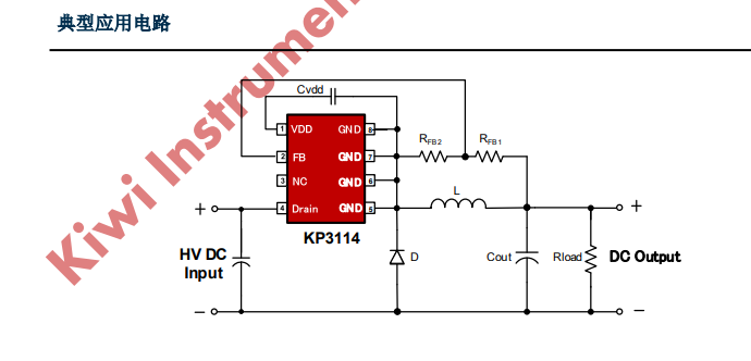KP3114 是一款高性能低成本 PWM 控制功率开关,适用于离线式小功率降压型应用场合,外围电路简单、器件个数少。同时产品内置高耐压 MOSFET 可提高系统浪涌耐受能力。
