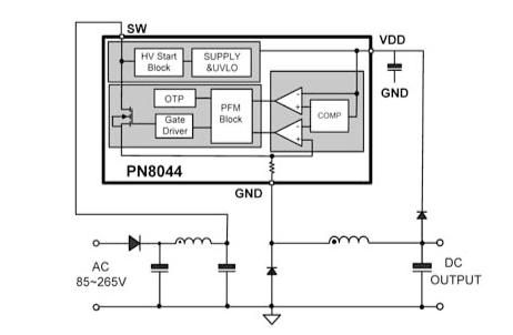 PN8044半封闭式稳态输出功率5.4W @230VAC