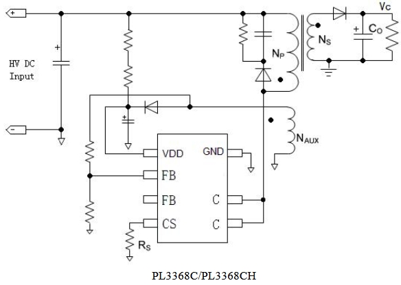 PL3368C 同时具有多种保护功能:逐周期峰值电流检测、VDD 欠压/过压保护、输出过压保护、输出短路保护和过温?;さ?。