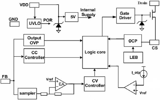 PL3325C 同时具有多种?;すδ埽褐鹬芷诜逯档缌骷觳狻⑶费贡;?、过压?;さ?。内部框架图如下所示