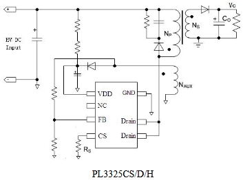 PL3325C 是一系列高效率、高集成度、原边调节的 PWM功率开关,其主要应用于小于 12W 的 AC/DC 反激式开关电源。PL3325C 通过去除光耦以及次级控制电路,简化了充电器/适配器等传统的恒流/恒压的设计,从而实现高精度的电压和电流调节。复合模式的应用使得芯片能够实现低静态功耗、低音频噪音、高效率。而且高集成的功率 MOSFET 能够降低外部 PCB的面积以及系统的成本。