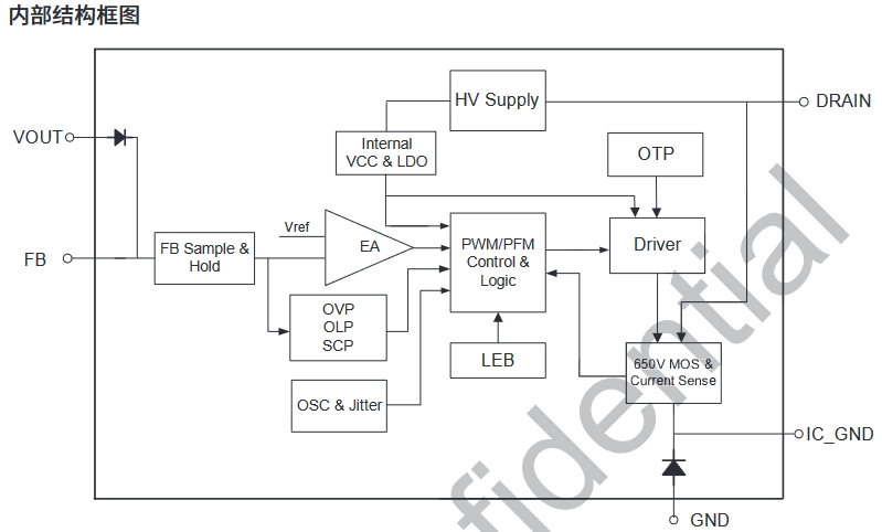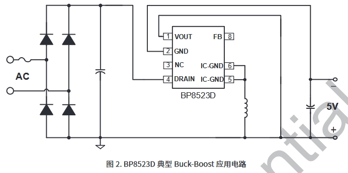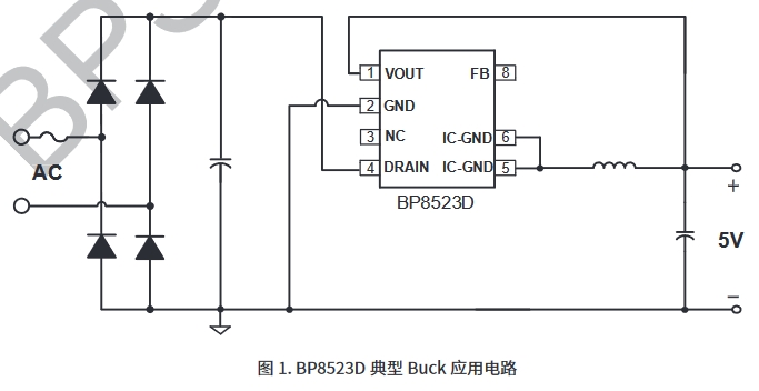BP8523D 是一款高性能、高集成度、低待机功耗的开关电源驱动芯片,适用于全电压 85~265VAC 输入的 Buck、Buck-Boost 变换器拓扑应用。 BP8523D 内部集成了 650V 高压 MOSFET、高压启动和自供电电路、电流采样电路、电压反馈电路以及续流二极管!采用先进的控制技术,无需外部 VCC 电容和环路补偿即可实现优异的恒压输出特性,极大地减少外围器件数量,节省系统成本和体积,同时提高可靠性。