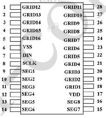 显示模式(8段x16位) ,支持共阴数码管输出