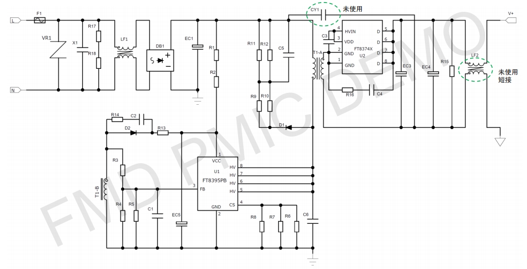FT8395PB2 是一款高度集成的原边反馈控制芯片,具备以下特点: