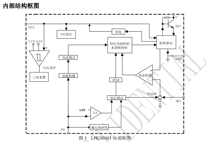 自供电技术:LPKSF001采用自供电技术,取消了辅助绕组VCC供电二极管,减少了外部元件数量,提高了电路的可靠性。