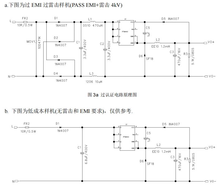 b.下图为低成本样机(无雷击和 EMI 要求),仅供参考