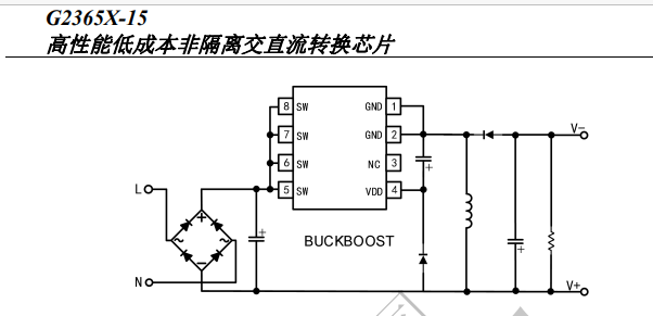 G2365X-15 是一款高集成度、高性能、低待机功耗的开关电源芯片,适用于非隔离开关电源应用。