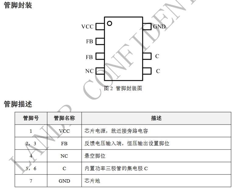 C (Pin 5 & 6): 内置功率三极管的集电极,用于连接变压器初级绕组。